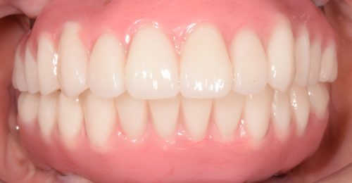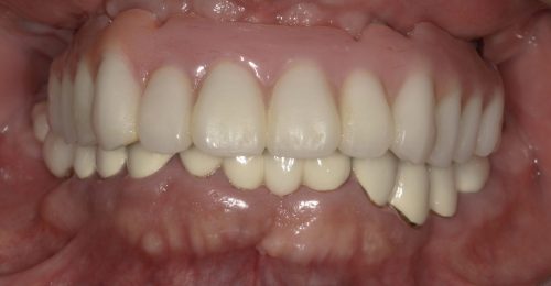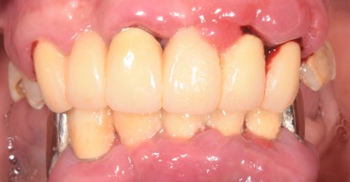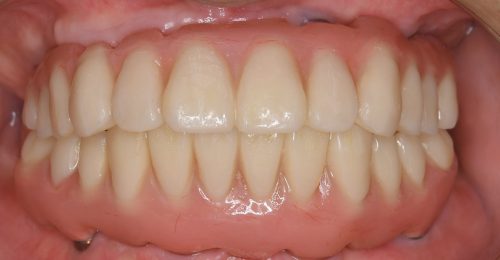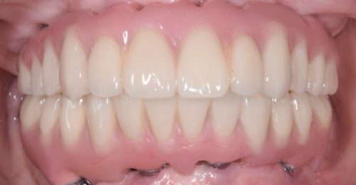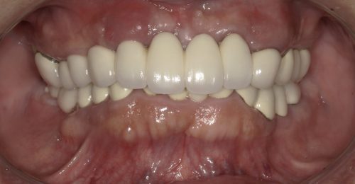 | 治療内容 | 1年前に作った入れ歯が痛くなり噛めない。バネも歯肉に刺さると来院。今回は入れ歯ではなくしっかり噛みたいということでオールオン4を希望。 |
