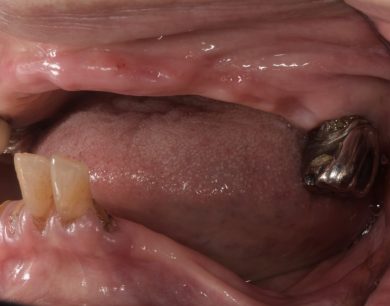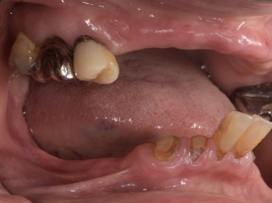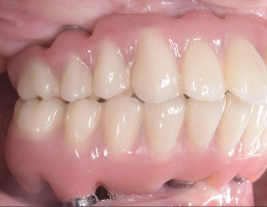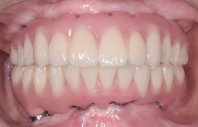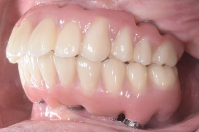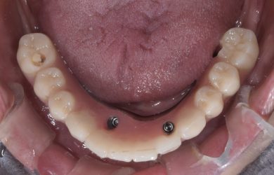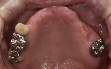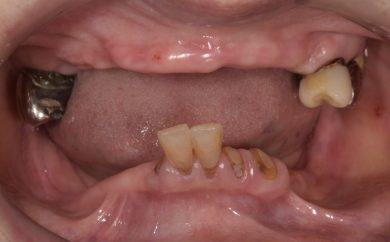 | 治療内容 | 1年前に作った入れ歯が痛くなり噛めない。バネも歯肉に刺さると来院。今回は入れ歯ではなくしっかり噛みたいということでオールオン4を希望。 |