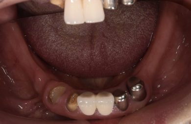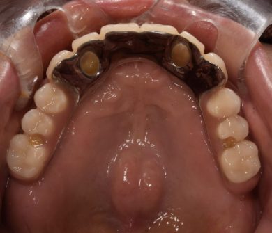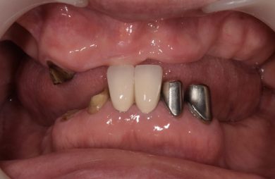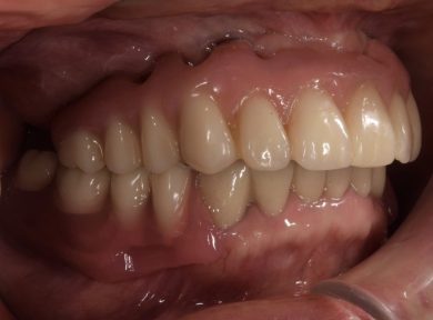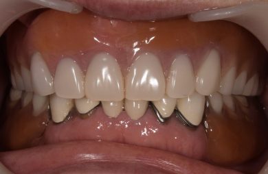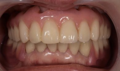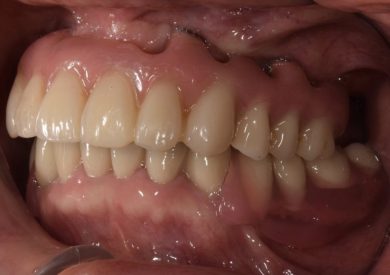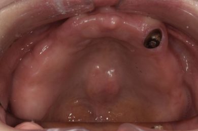 | 治療内容 | 上顎の入れ歯が合わなくなった。インプラントも興味があり話を聞きたいと来院。何年も前から入れ歯を使っており、口を大きく開けたり人前では口元を隠していた。綺麗にしたい、入れ歯から解放されたいとの希望。 |